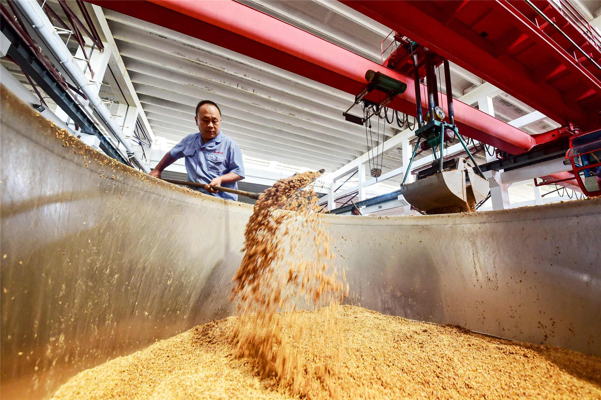 在一声声铿锵有力的号子声中,这些从业年龄达到十年以上的酿酒师们,传承手工酿酒技艺,一锨锨把酒醅从窖池中铲起,从分层起窖到加料拌和再到装甑蒸酒,酿酒师们各司其职,每一道工序都严苛娴熟,每一个环节都井然有序。正所谓“慢工出细活”,手工慢酿的精妙技艺和辗转腾挪的完美配合,将老匠人磨练数十年的功力展现得淋漓尽致。