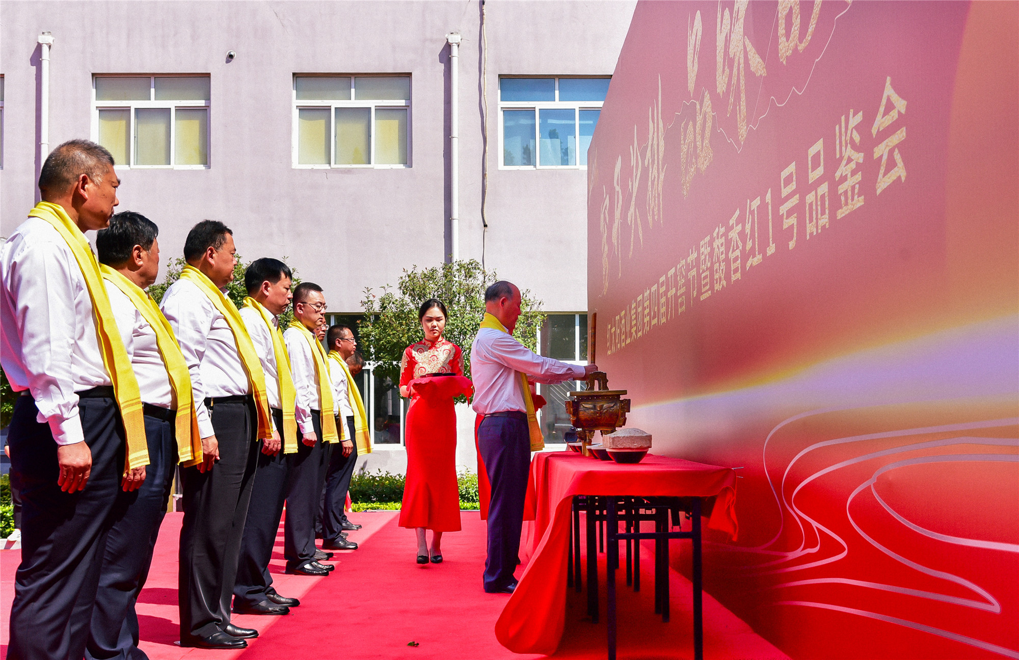 在这充满丰收与希望的季节,在这象征收获与喜悦的时刻,崇本守道、恪守匠心的红太阳酿酒人齐聚于此,敬天地、祭酒神、开酒窖、酿头排,与来自济宁各县区的核心客户、经销商等众多嘉宾,共同见证了一年之中品质最好的度夏头排酒如何诞生,开启了一场与众不同的文化+品质的美酒旅程。