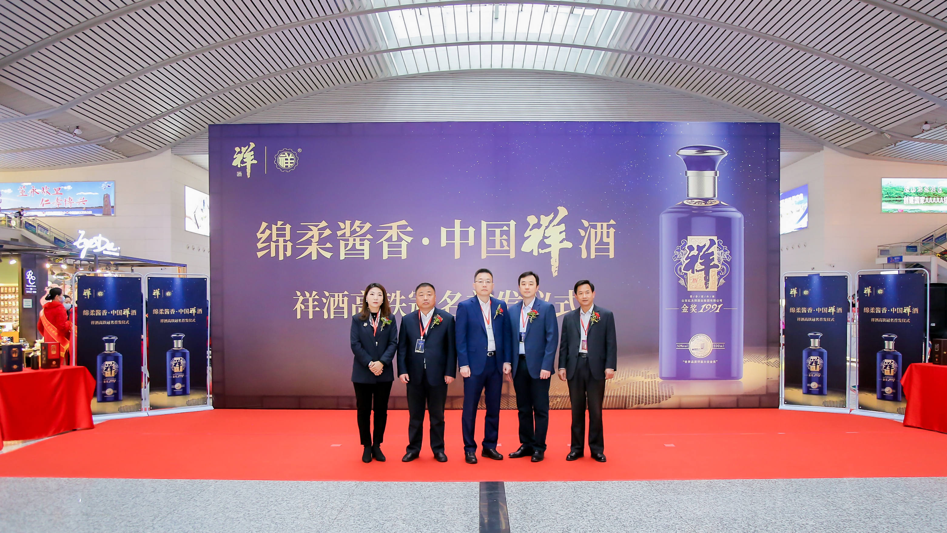 红太阳酒业集团总经理任志刚、华铁传媒集团副总裁程硕等领导应邀出席仪式,共同为品牌专列揭幕,并与现场嘉宾一起见证了“祥酒号”的初次盛装亮相。